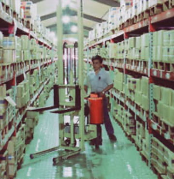 輸送体制確立、品種別格納庫、パレット、フォークリフト導入、保管、荷役の効率化を図る