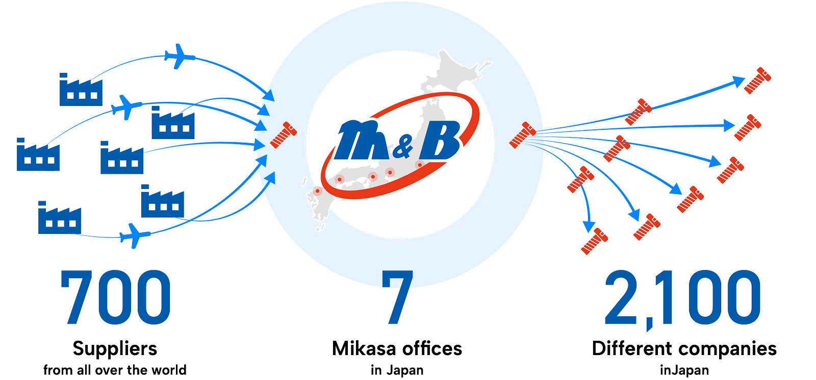 So we can deliver products efficiently to customers of various industries, MIKASA’s HQ in Osaka is connected via extensive network with its regional centers in Tokyo, Nagoya, Hiroshima, Fukuoka and Sendai.