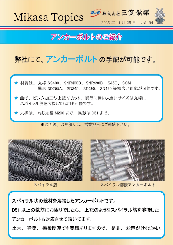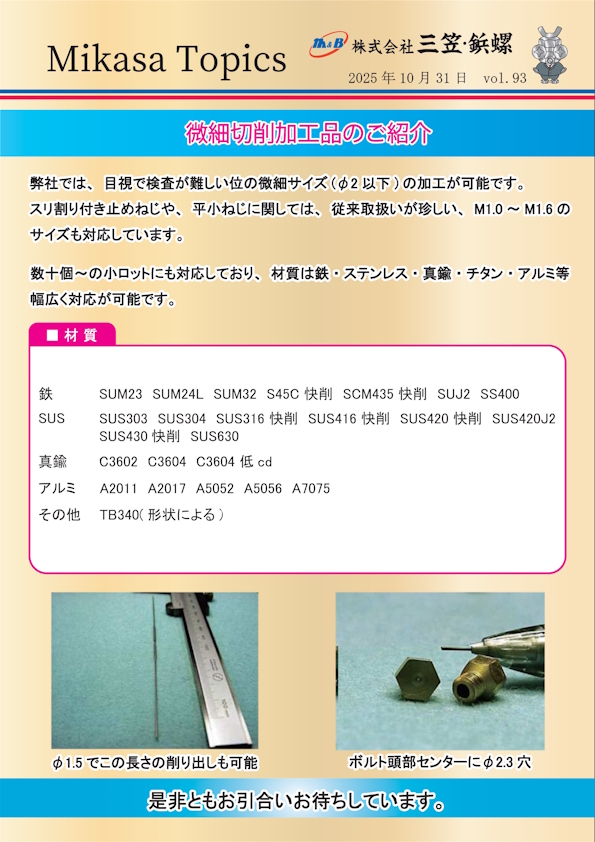 ホーム » ねじ情報 » 三笠トピックス