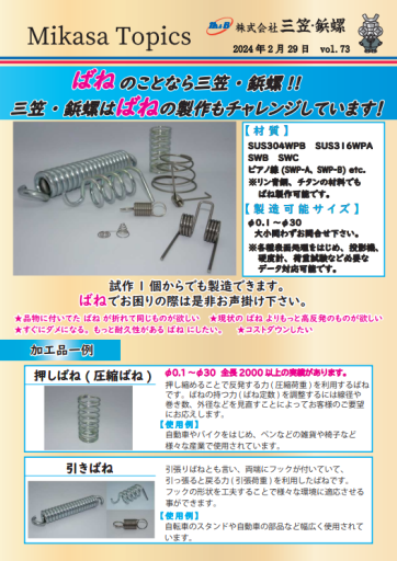 三笠・鋲螺はばねの製作もチャレンジしています!